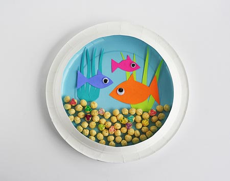 ماهی های این آکواریوم زیبااز کاغذ های رنگی وسنگ های داخل اون بوسیله نخود رنگ آمیزی وچسبانده شده.به همبن راحتی شما صاحب یک آکواریوم زیبا با ماهی های قشنگ شدید.